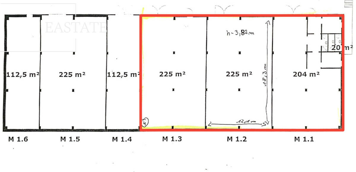 - Połączenie trzech magazynów o powierzchni: 225 m², 225 m², 204 m².