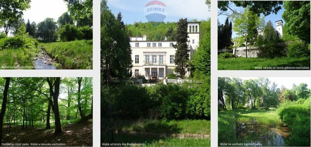 kutym ogrodzeniem stalowym. Zabudowana zabytkowym pałacem Villa