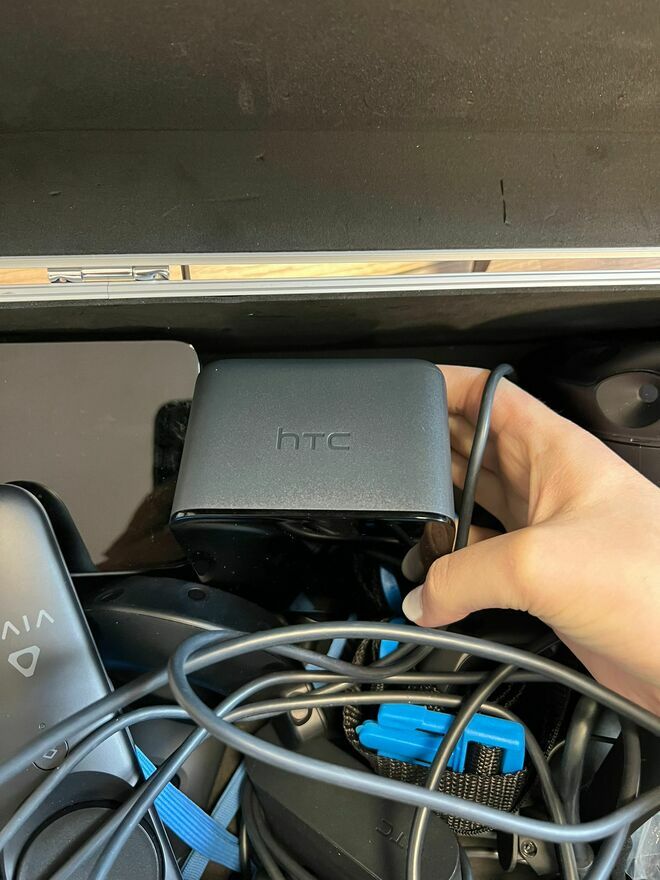 1.12 Zestaw VR nr 1 (Gogle VR, tracker ruchu, statyw, USB, opaska, torba-skrzynia) - Gogle VR HTC Cosmos Elite Google VR 99HART002-00, HTC Vive Tracker 2018 99HANL003-00 (2 szt.), statyw do stacji bazowych HTC VIVE, TP-Link UH700(7-port USB3.0), opaska oraz torba/skrzynia cena minimalna 1 650,00 zł.